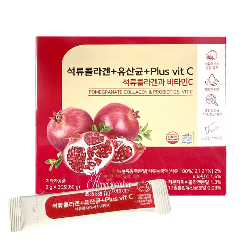 Collagen Lựu Đỏ Hàn Quốc là một sản phẩm chăm sóc da rất được ưa chuộng, đặc biệt nhờ vào khả năng nâng cao độ đàn hồi và giúp làn da trở nên căng bóng hơn. Với thành phần chính là chiết xuất từ lựu đỏ và collagen biển, sản phẩm không chỉ làm trẻ hóa làn da mà còn rất tốt cho sức khỏe đường ruột.
