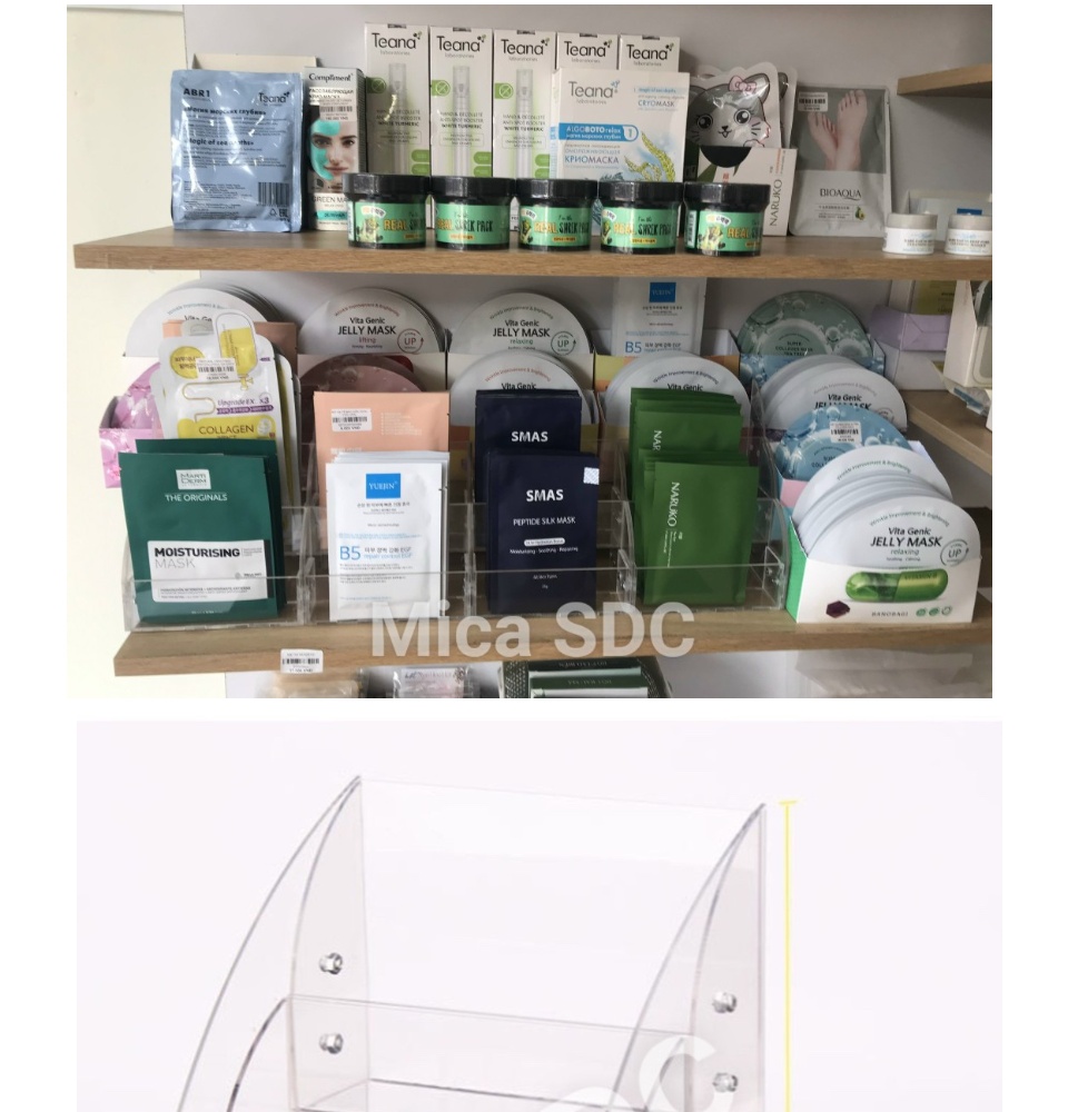 Kệ đựng mặt nạ của chúng tôi được thiết kế hiện đại, không chỉ giúp sắp xếp gọn gàng mà còn làm nổi bật sản phẩm, tăng hiệu quả bán hàng cho spa hay cửa hàng mỹ phẩm. Với chất liệu mica bền đẹp, kệ không chỉ có kiểu dáng sang trọng mà còn dễ dàng vệ sinh, không lo trầy xước.