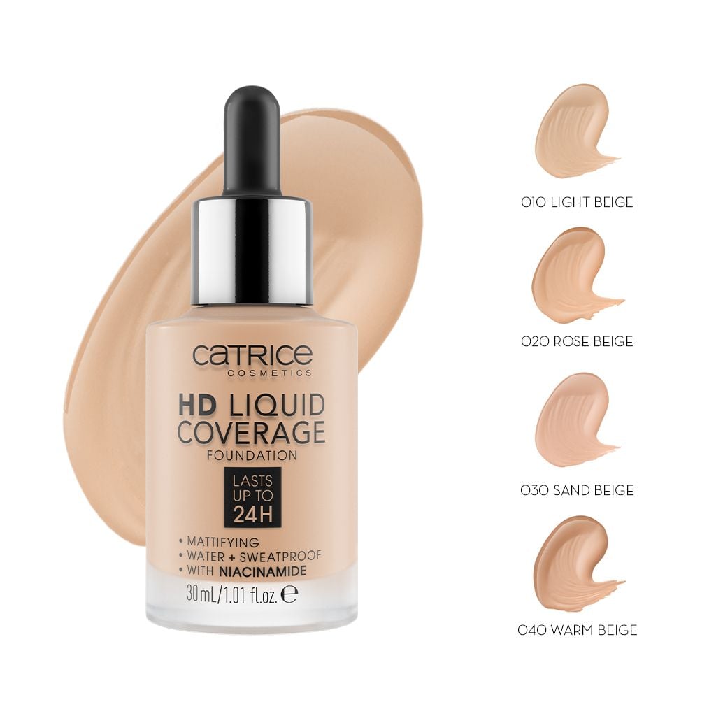 Nếu bạn đang tìm kiếm kem nền chất lượng với độ che phủ cao, Catrice HD Liquid Coverage Foundation là một sự lựa chọn tuyệt vời. Kem nền này không chỉ giúp làm đều màu da mà còn che khuyết điểm hiệu quả, mang lại lớp nền mịn màng suốt 24 giờ. Hơn nữa, sản phẩm này có texture lỏng nhẹ, dễ tán và không hề nặng mặt, rất lý tưởng cho mùa hè.