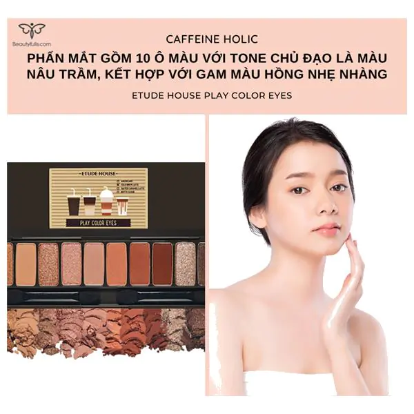 Phấn Mắt Etude House Coffee với bộ sưu tập Play Color Eyes Caffeine Holic mang đến cho bạn những gam màu dễ sử dụng và phong phú. Với 10 ô màu được thiết kế theo chủ đề In The Cafe, bạn sẽ ngay lập tức bị thu hút bởi hình ảnh những hạt cà phê bắt mắt. Những tông màu ấm được kết hợp khéo léo giúp đôi mắt bạn thêm nổi bật và quyến rũ.